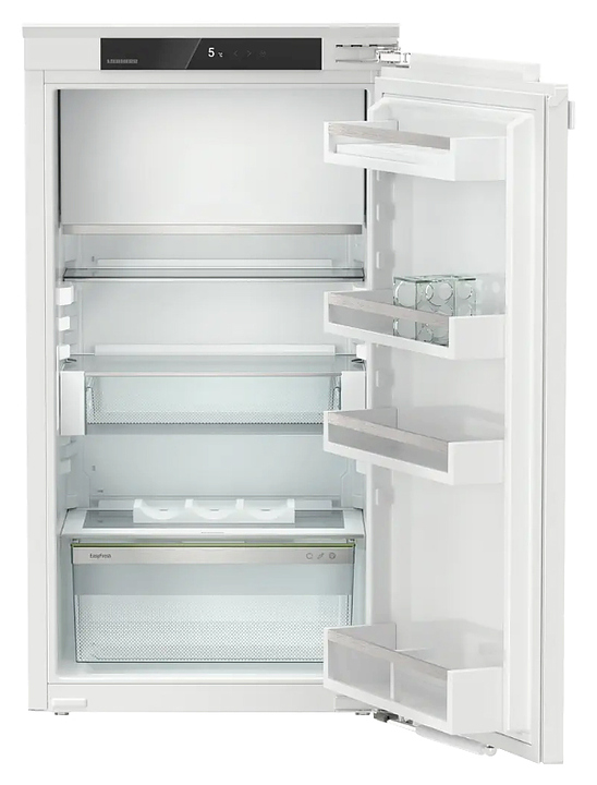 Встраиваемый холодильник Liebherr IRd 4021 серии Plus предназначен для охлаждения и хранения пищевых продуктов и напитков в гостиничных комплексах, офисах, а также домашних условиях. Модель оснащена сенсорной панелью управления с монохромным ЖК-дисплеем с функцией блокировки от детей и встроенной морозильной камерой. Полки в камере выполнены из стекла, полки на двери - из белого пластика.