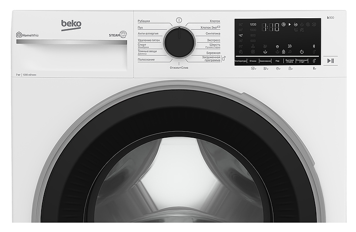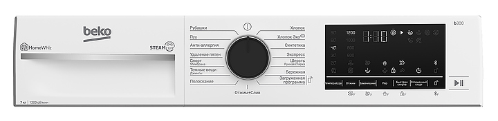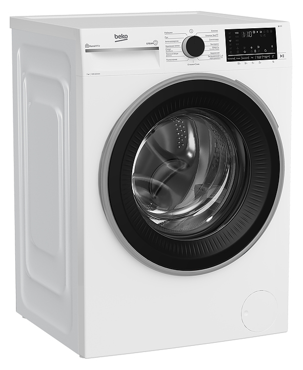 Стиральная машина Beko B3WFR572WB используется в квартирах и частных домах для стирки, полоскания и отжима белья, ткани и одежды. Модель оснащена фронтальной загрузкой, сенсорным дисплеем и инверторным мотором ProSmart. Технология SteamCure обрабатывает вещи паром в начале для лучшего отстирывания пятен и после отжима для разглаживания тканей. Электронный контроль дисбаланса равномерно распределяет белье в барабане для снижения уровня шума и вибраций во время стирки. 15 программ стирки: