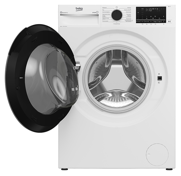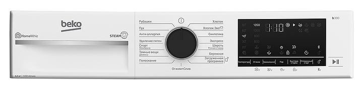 Стиральная машина Beko B3WFR56H2W используется в квартирах и частных домах для стирки, полоскания и отжима белья, ткани и одежды. Модель оснащена фронтальной загрузкой, инверторным мотором ProSmart, сенсорным дисплеем и нагревательным элементом Hi-Tech с защитой от накипи. Технология SteamCure обрабатывает вещи паром в начале для лучшего отстирывания пятен и после отжима для разглаживания тканей. Электронный контроль дисбаланса равномерно распределяет белье в барабане для снижения уровня шума и вибраций во время стирки. 15 программ стирки: