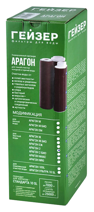 Картридж для фильтра ГЕЙЗЕР Арагон-2 - 10SL предназначен для установки в магистральные фильтры очистки холодной и горячей воды для комплексной очистки воды из централизованных источников водоснабжения. Модель выполнена из полимерного материала с добавкой серебр и ионообменной смолы. Особенности: