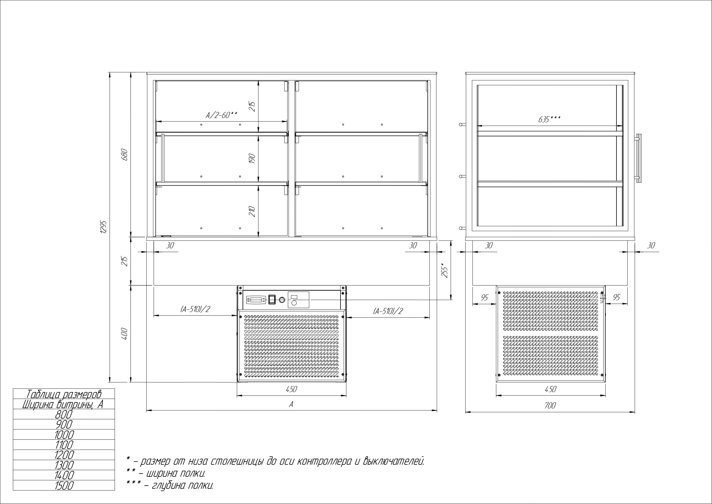 Витрина холодильная для салатов встраиваемая Finist AQUARIUM ВХВс-10/7/12 (2 полки с перфорацией)