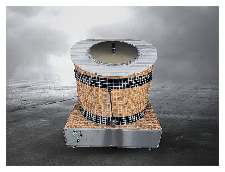 Газовый тандыр Firinmak используется в ресторанах, барах, кафе, на других предприятиях общественного питания и торговли для запекания мяса и птицы. Модель оснащена основанием квадратного сечения, вертикально ориентированной камерой круглого сечения, горловиной со съемной крышкой, газогорелочным блоком и расположенной на фронтальной стенке основания электромеханической панелью управления с поворотными переключателями, функциональными клавишами и светодиодными индикаторами. Камера выполнена из огнеупорного камня, внешняя облицовка корпуса с мозаичной отделкой, окантовка горловины – из гранита, теплоизоляция камеры – из минеральной ваты. Особенности: