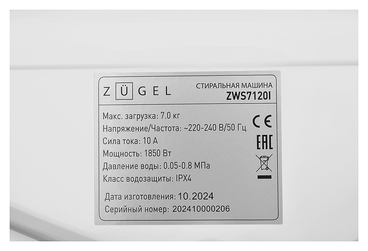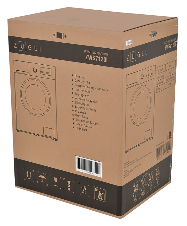 Стиральная машина Zugel ZWS7120I используется в квартирах и частных домах для стирки, полоскания и отжима белья, ткани и одежды. Модель оснащена фронтальной загрузкой, LED-дисплеем с расширенной индикацией и таймером. Инверторный двигатель обеспечивает экономное потребление электроэнергии и низкий уровень шума, гарантирует высокое качество стирки и отжима, надежность и долговечность. Стирка с паром позволяет эффективно удалить въевшиеся загрязнения, нейтрализовать аллергены, смягчить ткань и облегчить глажку. Функция дозагрузки позволяет приостановить работу программы и добавить в бак белье в процессе стирки. Барабан выполнен из нержавеющей стали. 16 программ стирки:
