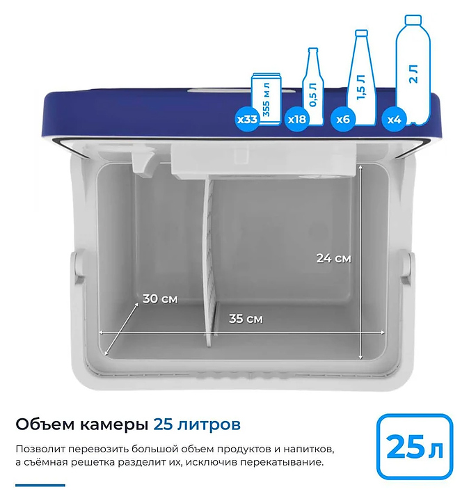 Автохолодильник Zugel ZCR25 предназначен для охлаждения, нагревания, хранения и транспортировки продуктов питания и напитков в автомобилях, автодомах, лодках, в путешествиях, походах, на пикниках или во время кемпинга. Модель оснащена электронным управлением, выемкой для фиксации высоких бутылок и ручкой для переноски. Бесщеточный двигатель гарантирует бесшумную работу без перегрева и искрообразования. Специальное крепление позволит зафиксировать крышку открытой для комфортной эксплуатации. Высококачественная теплоизоляция корпуса выполнена из полиуретановой пены. В комплект поставки входят кабель питания 220 В с вилкой и автомобильный кабель 12 В от прикуривателя. Особенности: