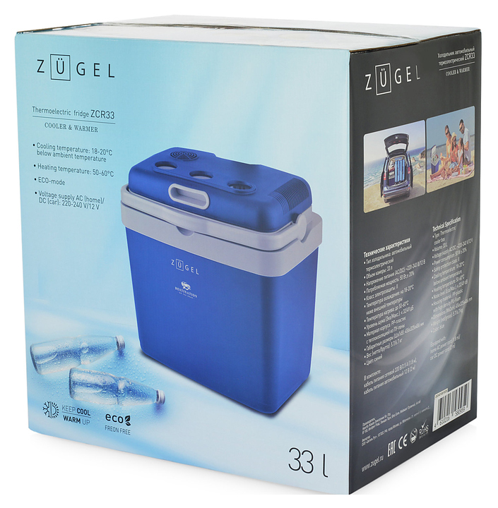 Автохолодильник Zugel ZCR33 предназначен для охлаждения, нагревания, хранения и транспортировки продуктов питания и напитков в автомобилях, автодомах, лодках, в путешествиях, походах, на пикниках или во время кемпинга. Модель оснащена электронным управлением, выемкой для фиксации высоких бутылок и ручкой для переноски. Бесщеточный двигатель гарантирует бесшумную работу без перегрева и искрообразования. Специальное крепление позволит зафиксировать крышку открытой для комфортной эксплуатации. Дополнительная съемная цельная термокрышка предназначена для дольшего сохранения температуры и устанавливается при применении аккумуляторов холода. Корпус выполнен из PР-пластика с теплоизоляцией из полиуретановой пены. В комплект поставки входят кабель питания 220 В с вилкой и автомобильный кабель 12 В от прикуривателя. Особенности:
