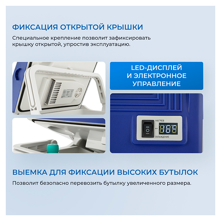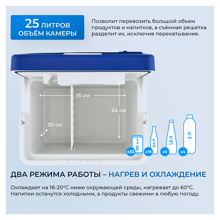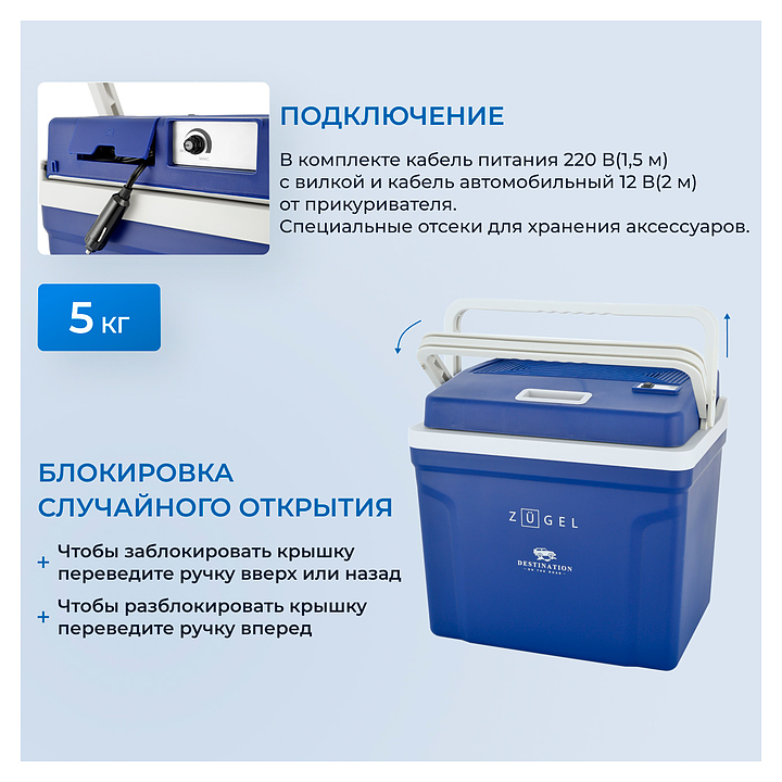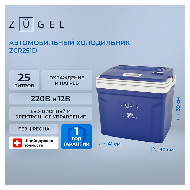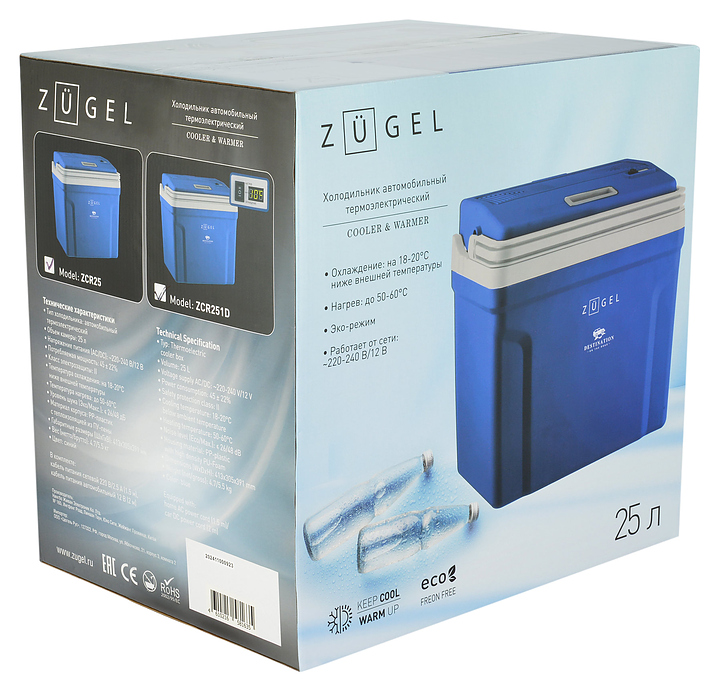 Автохолодильник Zugel ZCR251D предназначен для охлаждения, нагревания, хранения и транспортировки продуктов питания и напитков в автомобилях, автодомах, лодках, в путешествиях, походах, на пикниках или во время кемпинга. Модель оснащена электронным управлением, LED-дисплеем, выемкой для фиксации высоких бутылок и ручкой для переноски. Бесщеточный двигатель гарантирует бесшумную работу без перегрева и искрообразования. Специальное крепление позволит зафиксировать крышку открытой для комфортной эксплуатации. В комплект поставки входят кабель питания 220 В с вилкой и автомобильный кабель 12 В от прикуривателя. Особенности: