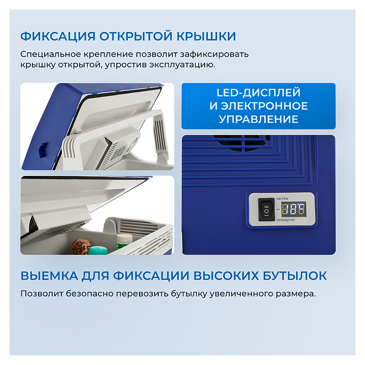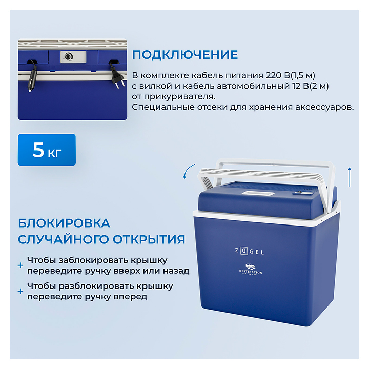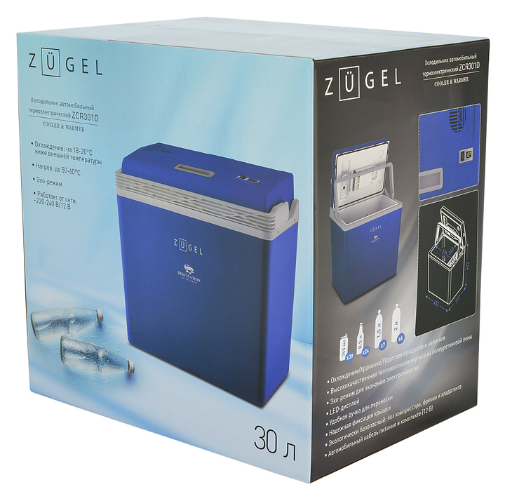 Автохолодильник Zugel ZCR301D предназначен для охлаждения, нагревания, хранения и транспортировки продуктов питания и напитков в автомобилях, автодомах, лодках, в путешествиях, походах, на пикниках или во время кемпинга. Модель оснащена электронным управлением, LED-дисплеем, выемкой для фиксации высоких бутылок и ручкой для переноски. Бесщеточный двигатель гарантирует бесшумную работу без перегрева и искрообразования. Специальное крепление позволит зафиксировать крышку открытой для комфортной эксплуатации. Корпус выполнен из PP-пластика с теплоизоляцией из пенополиуретановой пены. В комплект поставки входят кабель питания 220 В и автомобильный кабель 12 В от прикуривателя. Особенности: