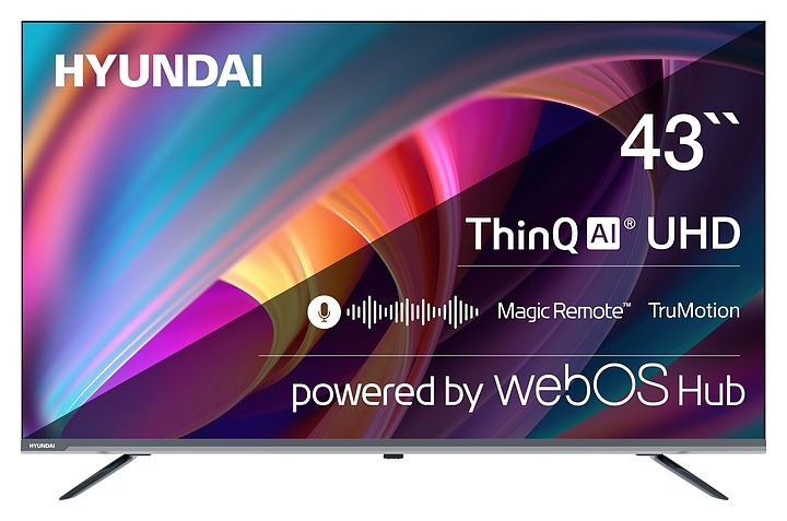 Телевизор Hyundai H-LED43BU7100 предназначен для приема и воспроизведения видео и аудио контента с различных ресурсов таких как телевещание, Интернет, дополнительное подключаемое оборудование и физические носители в домашних условиях, гостиницах, офисах, холлах и кабинетах различных учреждений. Прибор оснащен плоским монитором, акустической стереосистемой с 2 встроенными динамиками, встроенным блоком питания, кабелем питания с вилкой и основным выключателем, пульт – кнопочной клавиатурой, датчиком движения и колесом прокрутки. Кожух прибора выполнен из ударопрочного полимера с матовой поверхностью черного цвета, фронтальная рамка и опоры с поверхностью серого оттенка, корпус пульта обтекаемой формы – из серого пластика.