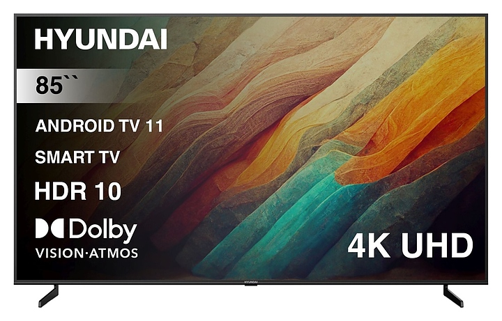 Телевизор Hyundai H-LED85BU7007 предназначен для приема и воспроизведения видео и аудио контента с различных ресурсов таких как телевещание, Интернет, дополнительное подключаемое оборудование и физические носители в домашних условиях, гостиницах, офисах, холлах и кабинетах различных учреждений. Прибор оснащен плоским монитором, акустической стереосистемой с 2 встроенными динамиками, встроенным блоком питания, кабелем питания с вилкой и основным выключателем, пульт – кнопочной клавиатурой. Кожух прибора выполнен из ударопрочного полимера с матовой поверхностью черного цвета, рамка – из металла, корпус пульта – из черного пластика.