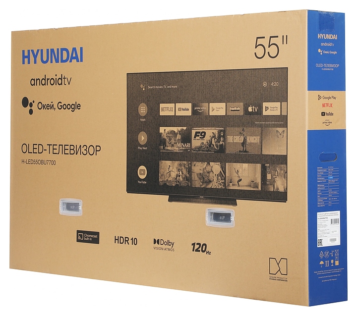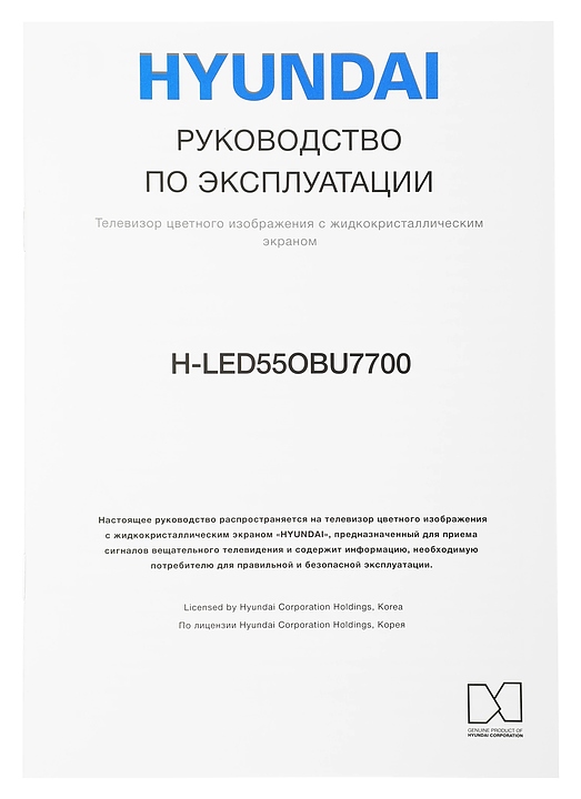 Телевизор Hyundai H-LED55OBU7700 предназначен для приема и воспроизведения видео и аудио контента с различных ресурсов таких как телевещание, Интернет, дополнительное подключаемое оборудование и физические носители в домашних условиях, гостиницах, офисах, холлах и кабинетах различных учреждений. Прибор оснащен плоским монитором, акустической стереосистемой с 2 встроенными динамиками, встроенным блоком питания, кабелем питания с вилкой, клавишами управления и светодиодными индикаторами, пульт – кнопочной клавиатурой. Кожух прибора выполнен из ударопрочного полимера с матовой поверхностью черного цвета, тыльная панель экрана и внешняя облицовка опоры – из металла с серебристой поверхностью, корпус пульта – из пластика в комбинации черного и серебристого тонов.