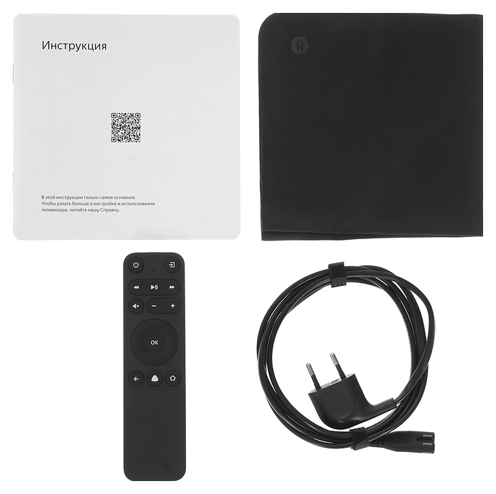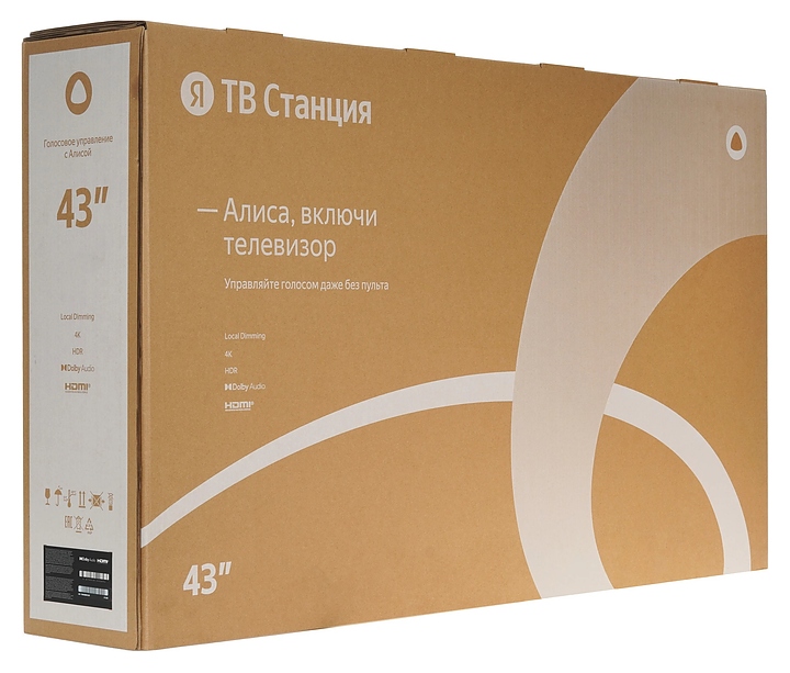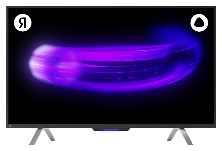 Телевизор Яндекс ТВ Станция YNDX-00091 предназначен для приема и воспроизведения видео и аудио контента с различных ресурсов таких как Интернет, дополнительное подключаемое оборудование и физические носители в домашних условиях, гостиницах, офисах, холлах и кабинетах различных учреждений. Прибор оснащен плоским монитором, акустической стереосистемой с 4 встроенными разнонаправленными динамиками, встроенным блоком питания, клавишами управления и светодиодным индикатором, пульт – кнопочной клавиатурой. Кожух прибора выполнен из ударопрочного полимера с матовой поверхностью черного цвета, рамка экрана с поверхностью черного цвета, опоры – из металла с поверхностью серебристого оттенка, корпус пульта – из черного пластика.
