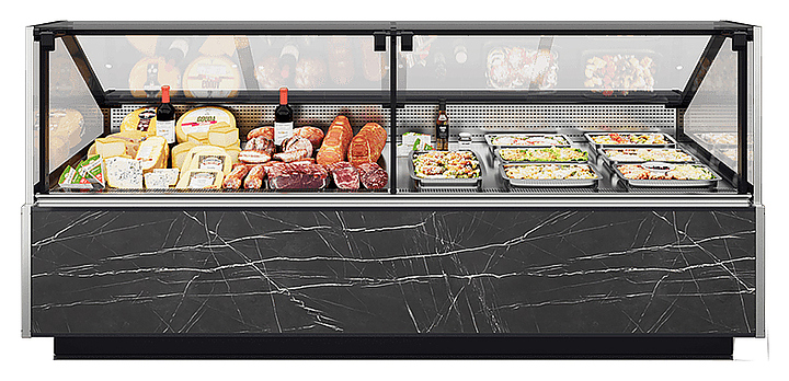 Холодильная витрина Brandford Calypso Slim ОУ 90 предназначена для демонстрации, охлаждения и кратковременного хранения гастрономических товаров на предприятиях общественного питания и торговли. Модель оснащена встроенным холодильным агрегатом и энергосберегающим светодиодным освещением внутреннего объема. Рабочая поверхность и базовые поддоны выполнены из нержавеющей стали, боковины - из стеклопакета, фронтальная часть - из закаленного стекла на гидролифтах. В комплект поставки входят фронтальные цветные панели. Холодильный агрегат и боковины в комплект поставки не входят и приобретаются отдельно. Модель доступна в 12 стандартных цветовых исполнениях панели по таблице RAL: 1013, 1023, 2004, 3020, 5010, 6018, 7011, 7016, 7040, 8017, 9005 и 9016. Особенности: