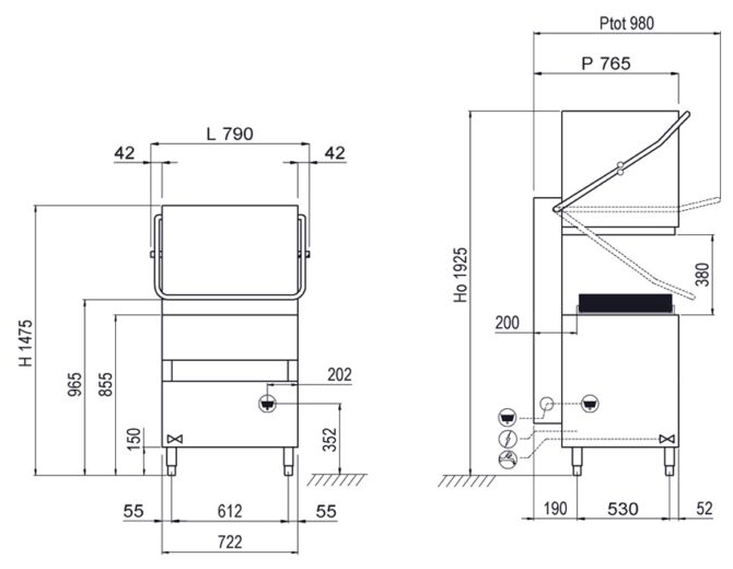 Машина посудомоечная купольная Krupps Advance CH150 ТЭН бойлера (HP90) 8.1 кВт, сливной насос DP110