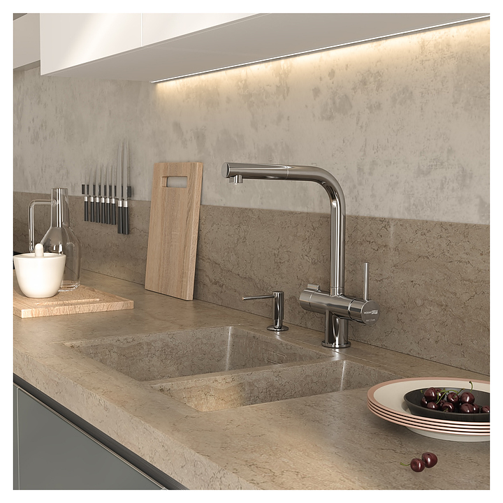 Смеситель для кухни под фильтр с выдвижной лейкой Wasserkraft A8917 предназначен для использования в кухонных помещениях для подачи горячей и холодной воды совместно с любым стандартным фильтром. Модель оснащена керамическим картриджем, обеспечивающим плавный ход рычага смесителя, контроль и точность при выборе напора и температуры воды и двухфункциональным встроенным пластиковым аэратором Neoperl с отдельными выводами проточной и фильтрованной воды. Изделие выполнено из латуни, отличающейся прочностью, долговечностью и устойчивостью к перепадам температур, нержавеющей стали AISI 304 и ABS-пластика. Комплект поставки: