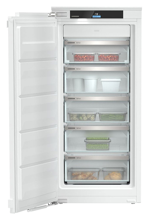 Встраиваемый морозильник Liebherr SIFNdi 4155 серии Prime предназначен для заморозки и длительного хранения продуктов и полуфабрикатов в частных домах, квартирах, отелях и офисах. Модель оснащена сенсорным и свайповым экраном с цветным 2,4" TFT-дисплем с функцией блокировки от детей. Полки выполнены из стекла. Особенности: