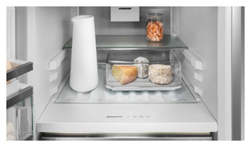 SoftSystem обеспечивает мягкое и безопасное закрывание двери, при этом стоящие в дверце бутылки не гремят и не качаются