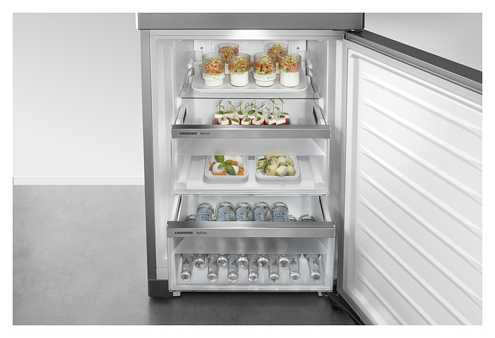 Холодильник Liebherr CBNstd 5783 серии Peak предназначен для охлаждения, замораживания, кратковременного и длительного хранения пищевых продуктов и напитков в гостиничных комплексах, офисах, а также домашних условиях. Модель оснащена 2,4" сенсорным дисплеем Touch & Swipe управляемым жестами и расположенным на двери с функцией блокировки от детей и вертикальной, сплошной, эргономичной утопленой ручкой. Дверь снаружи и внутри и задняя стенка выполнены из нержавеющей стали с поверхностью SmartSteel - горизонтальная шлифовка придет шелковый блеск устойчива к появлению царапин и отпечатков пальцев, боковые стенки - из нержавеющей стали, полки в холодильной камере - из сатинированного безопасного стекла с обрамлением из нержавеющей стали, полки в морозильной камере - из стекла.