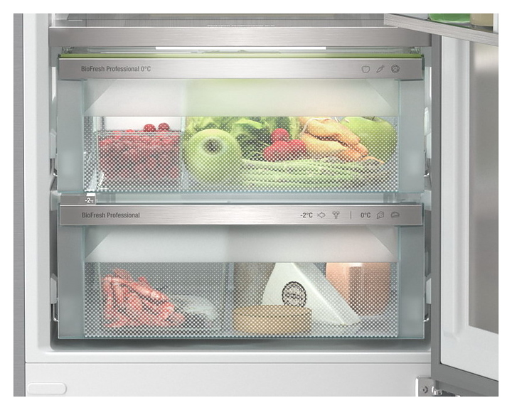 Секция BioFresh с HydroBreeze - холодный туман, в сочетании с температурой в контейнере немного выше 0 °C (HydroBreeze активируется каждые 90 минут на 4 секунды и на 8 секунд при открытии двери)