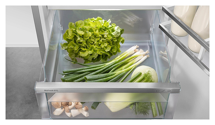 Телескопические направляющие в зоне BioFresh - контейнеры легко открываются, мягко и самостоятельно закрываются