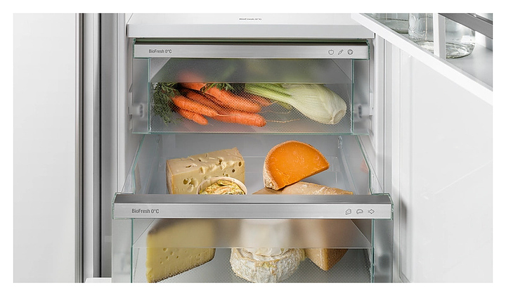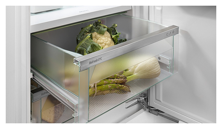 Телескопические направляющие в зоне BioFresh - контейнеры легко открываются, мягко и самостоятельно закрываются