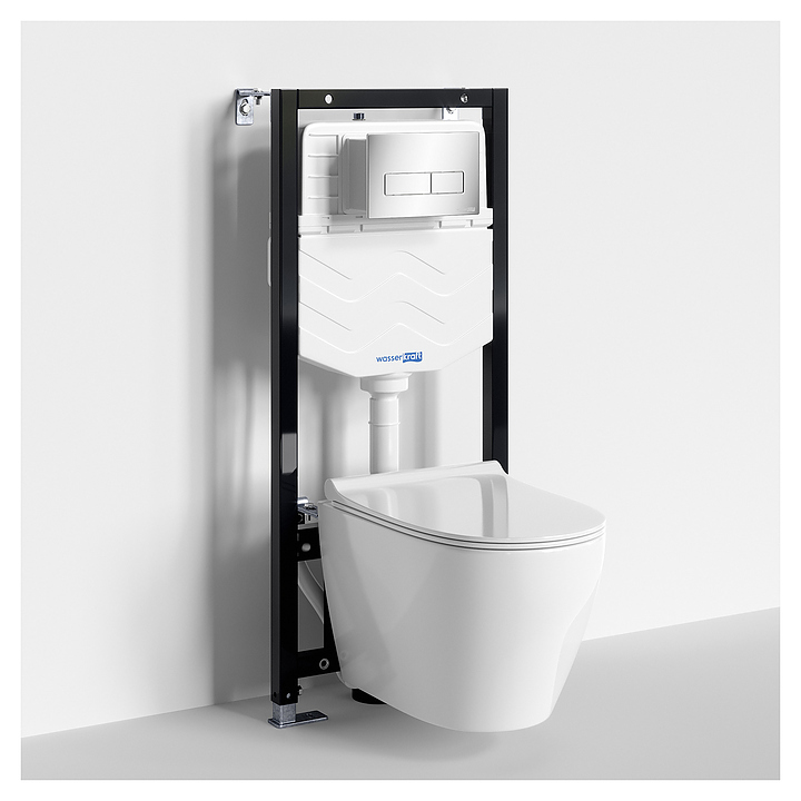 Система инсталляции Wasserkraft Aller 10TLT.010.ME.CH03.H002 предназначена для установки подвесных унитазов. Рама выполнена из цельного стального профиля, клавиша - из ABS-пластика. Комплектация: