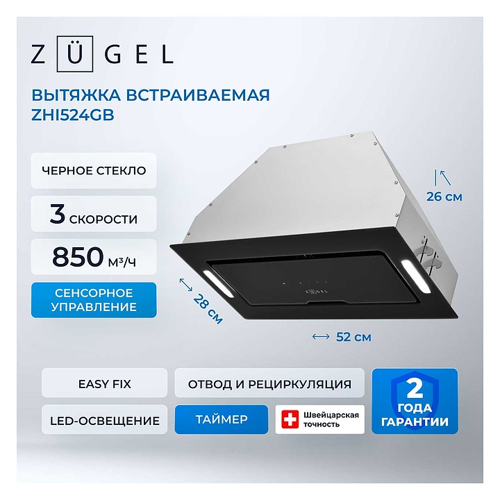 Кухонная вытяжка Zugel ZHI524GB используется в домашних условиях для очистки воздуха от продуктов горения, копоти и запахов в процессе приготовления пищи путем принудительной вентиляции. Модель оснащена электронным сенсорным управлением, 3 скоростями и таймером. Светодиодные лампы гарантируют яркое и равномерное освещение рабочей зоны. Корпус выполнен из стали, панель управления - из закаленного стекла, жировой фильтр - из алюминия. В комплект поставки входит жироулавливающий фильтр. Особенности: