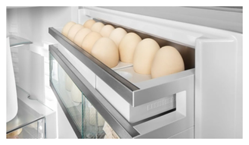 Лоток на 10 яиц может быть расположен как на полках, так и на дверце