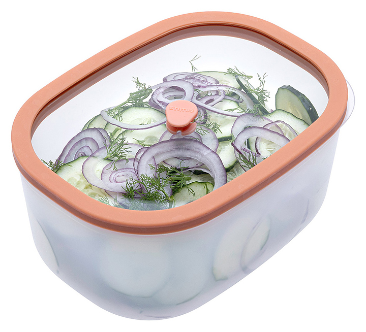 Вакуумный контейнер Status Fresko 14 salmon используется в частных домах и квартирах для упаковки продуктов и последующего их длительного хранения. Благодаря использованию вакуума, продукты не подвергаются воздействию кислорода, срок их хранения значительно увеличивается, продукты сохраняют свои вкусовые качества и аромат, запахи в холодильнике не смешиваются. Модель имеет прямоугольную форму. Изделие выполнено из полипропилена без BPA, крышка - из стекла. Характеристики: