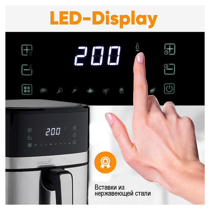 Аэрофритюрница Profi Cook PC-FR 1294 H предназначена для приготовления различных продуктов без масла в частных домах и квартирах. Модель оснащена светодиодным дисплеем с сенсорным управлением и индивидуальной настройкой времени и температуры. Антипригарное покрытие чаши обеспечивает легкое мытье. Вставки выполнены из нержавеющей стали. Особенности: