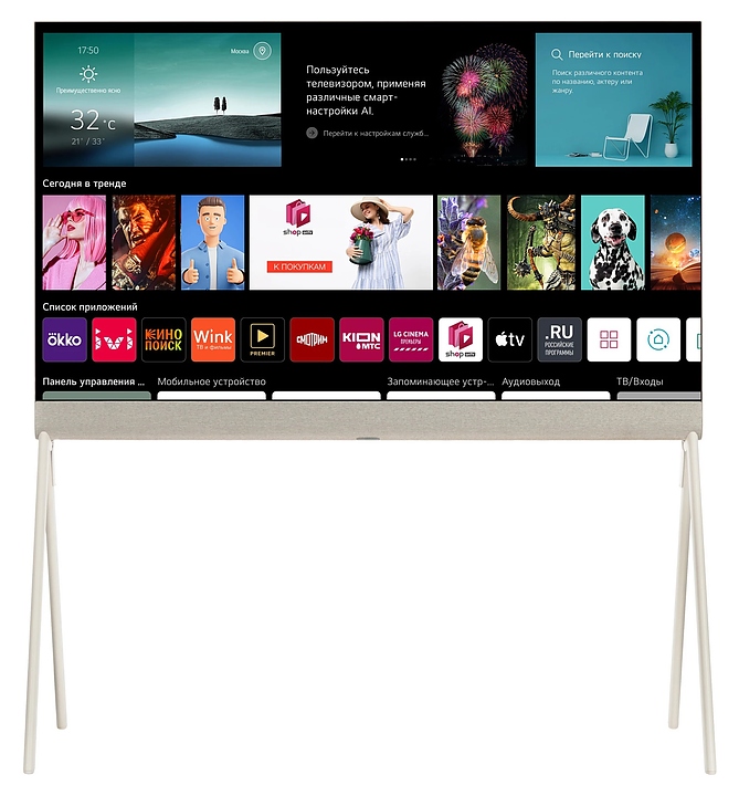 Телевизор LG 55LX1T6LA.ARUG предназначен для приема и воспроизведения видео и аудио контента с различных ресурсов таких как телевещание, Интернет, дополнительное подключаемое оборудование и физические носители в домашних условиях, гостиницах, офисах, холлах и кабинетах различных учреждений. Прибор оснащен плоским монитором, акустической стереосистемой с 4 встроенными направленными вниз динамиками, встроенным блоком питания, кабелем питания с вилкой и основным выключателем, пульт – кнопочной клавиатурой, датчиком движения и колесом прокрутки. Кожух прибора и корпус подставки выполнены из ударопрочного полимера с поверхностью белого цвета, внешняя поверхность корпуса подставки отделана тканью бежевого оттенка, фронтальная рамка экрана с поверхностью черного цвета, корпус пульта – из белого пластика.