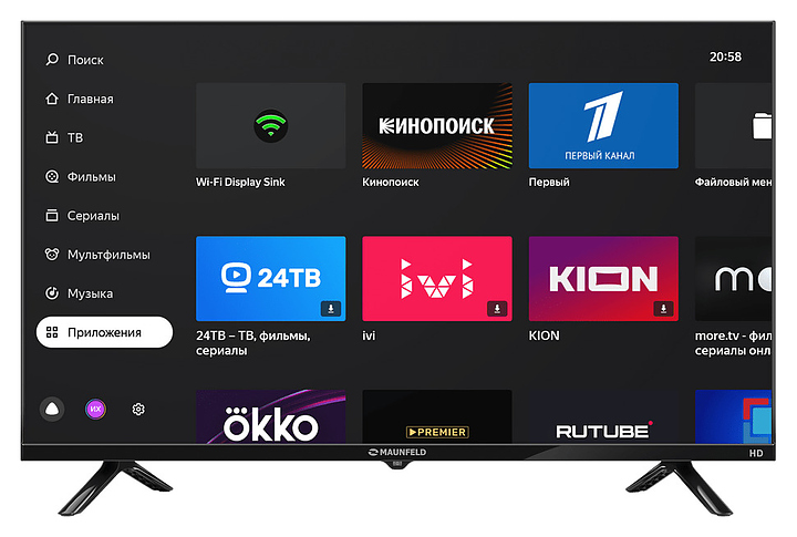 Телевизор Maunfeld MLT32HSX02 предназначен для приема и воспроизведения видео и аудио контента с различных ресурсов таких как телевещание, Интернет, дополнительное подключаемое оборудование и физические носители в домашних условиях, гостиницах, офисах, холлах и кабинетах различных учреждений. Прибор оснащен плоским широкоформатным монитором, акустической стереосистемой с 2 встроенными динамиками, встроенным блоком питания и основным выключателем, пульт – кнопочной клавиатурой. Кожух прибора выполнен из ударопрочного полимера с матовой поверхностью черного цвета, рамка экрана и опоры с поверхностью черного цвета, корпус пульта – из черного пластика.