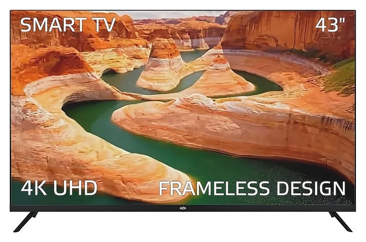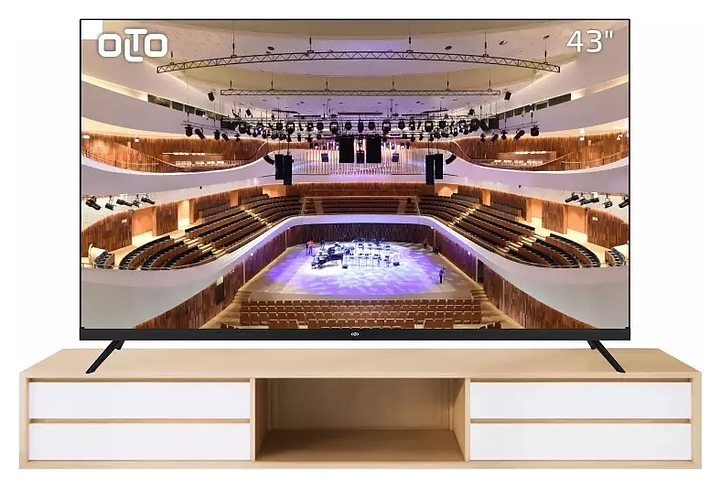 Телевизор OLTO 43ST30U предназначен для приема и воспроизведения видео и аудио контента с различных ресурсов таких как телевещание, Интернет, дополнительное подключаемое оборудование и физические носители в домашних условиях, гостиницах, офисах, холлах и кабинетах различных учреждений. Прибор оснащен плоским монитором, акустической стереосистемой с 2 встроенными динамиками, кабелем питания с вилкой, встроенным блоком питания и клавишами управления, пульт – кнопочной клавиатурой. Кожух прибора выполнен из ударопрочного полимера с матовой поверхностью черного цвета, рамка экрана и опоры с поверхностью черного цвета, корпус пульта – из черного пластика.