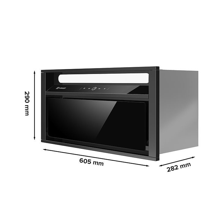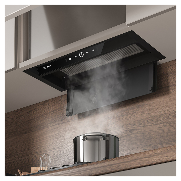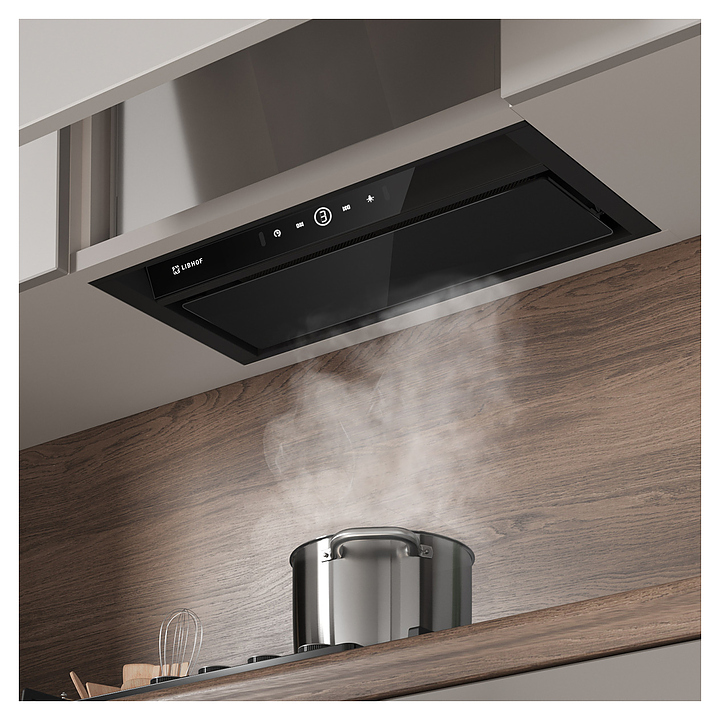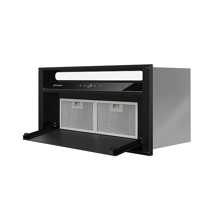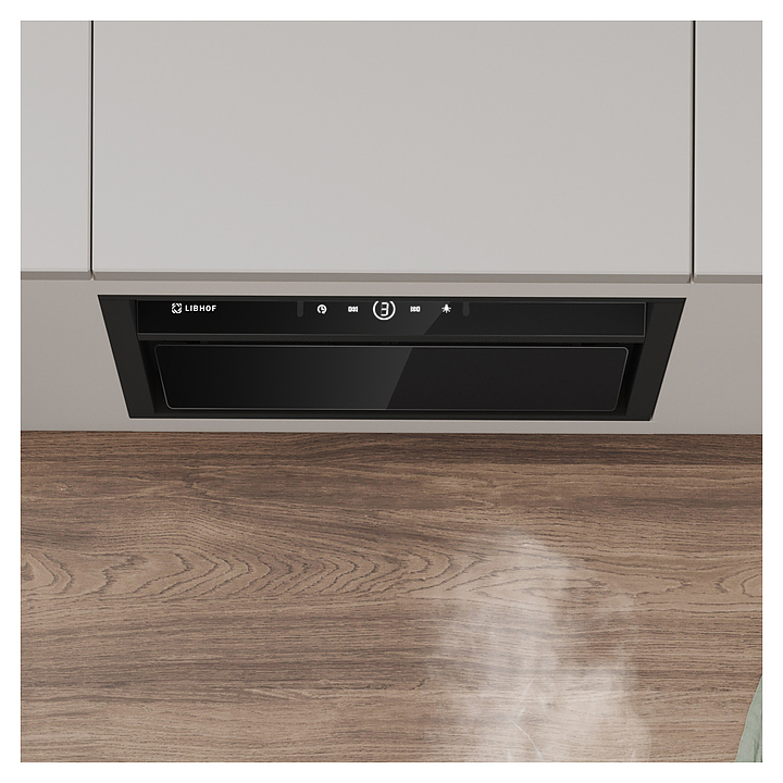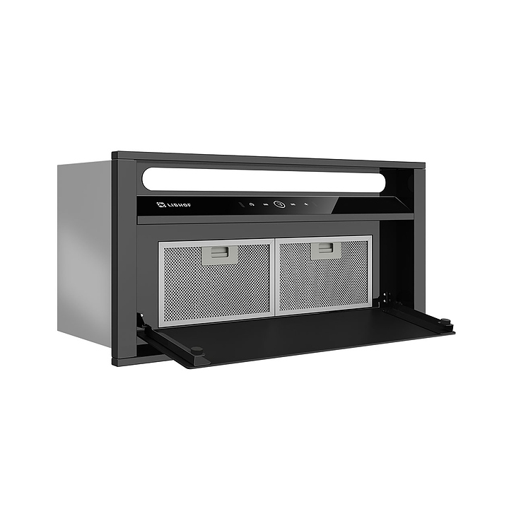 Полновстраиваемая кухонная вытяжка Libhof LB-3160 black предназначена для очистки воздуха от продуктов горения, копоти и запахов в процессе приготовления пищи путем принудительной вентиляции в домашних условиях. Модель оснащена двумя жироулавливающими фильтрами, вентилятором с электродвигателем, откидной крышкой, светодиодными светильниками, кабелем питания с вилкой, панелью управления с сенсорными клавишами и цифровым дисплеем индикации. Корпус выполнен из высококачественной стали с термостойким покрытием, жироулавливающий фильтр – из алюминия. В комплект поставки входят вытяжка в сборе, инструкция, комплект крепежа, обратный клапан. Особенности: