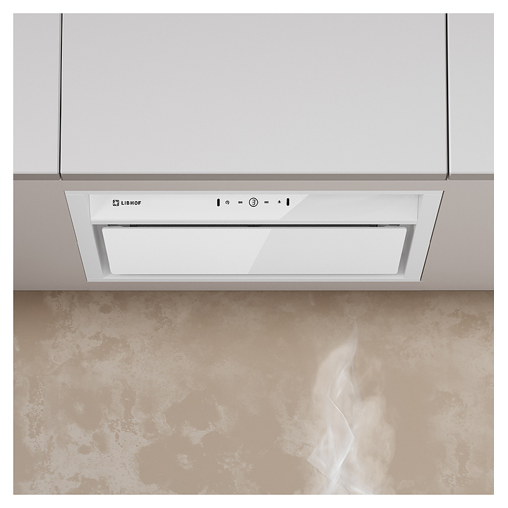 Полновстраиваемая кухонная вытяжка Libhof LB-3160 white предназначена для очистки воздуха от продуктов горения, копоти и запахов в процессе приготовления пищи путем принудительной вентиляции в домашних условиях. Модель оснащена двумя жироулавливающими фильтрами, вентилятором с электродвигателем, откидной крышкой, светодиодными светильниками, кабелем питания с вилкой, панелью управления с сенсорными клавишами и цифровым дисплеем индикации. Корпус выполнен из высококачественной стали с термостойким покрытием, жироулавливающий фильтр – из алюминия. В комплект поставки входят вытяжка в сборе, инструкция, комплект крепежа, обратный клапан. Особенности: