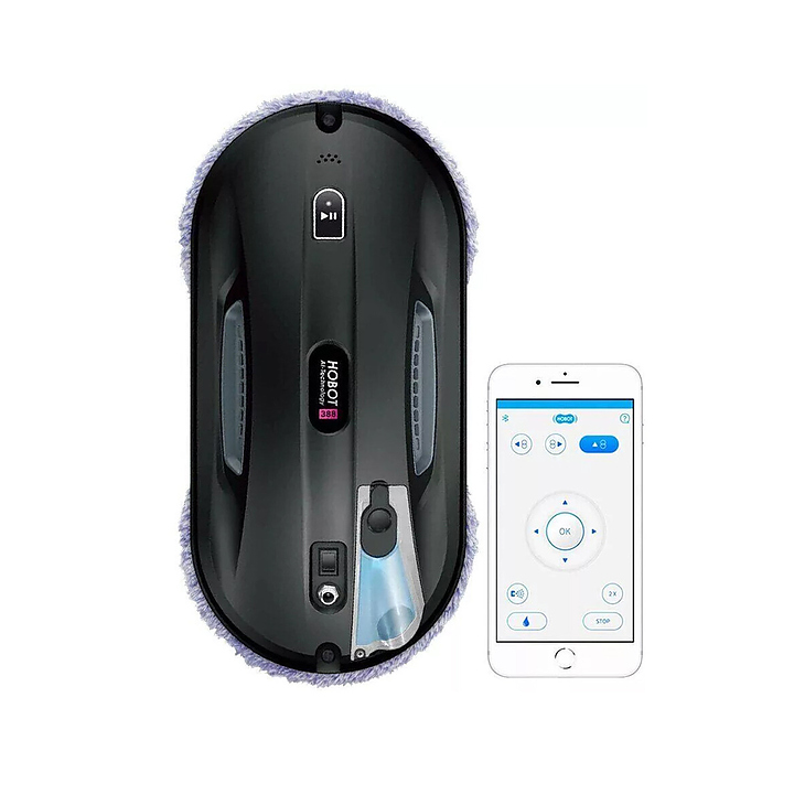Робот-пылесос HOBOT-388 предназначен для автоматической самостоятельной очистки всех стекол и стеклянных поверхностей в частных домах, квартирах, отелях и офисах. Модель оснащена двумя подвижными колесами, на которые закреплены салфетки из микрофибры, адаптером и пультом ДУ. В комплект поставки входят 14 чистящих многоразовых салфеток из микрофибры, два запасных кольца для салфеток, пульт дистанционного управления с батарейкой, пятиметровый удлинитель, сетевой адаптер питания, фирменная чистящая жидкость Hobot, страховочный шнур, а также запасная форсунка распылителя. Особенности:
