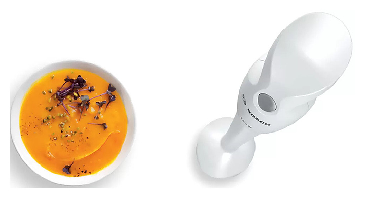 Погружной блендер Bosch MSM6B100 предназначен для взбивания жидкого теста, кремов и коктейлей, измельчения фруктов, овощей, орехов и трав, а также приготовления соусов и супов-пюре в домашних условиях. Модель оснащена ножом с 4 лезвиями и эргономичной ручкой. Функция AntiSplash предотвращает брызги. Съемная ножка отсоединяется простым поворотом. Корпус и погружная часть выполнены из пластика. Дополнительные характеристики: