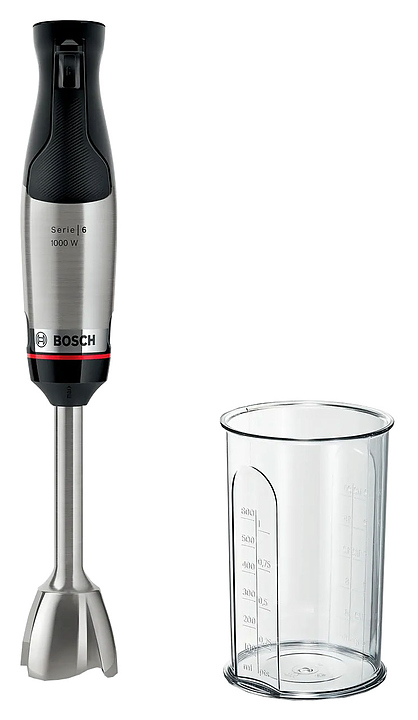 Погружной блендер Bosch MSM6M610 серии ErgoMixx предназначен для взбивания жидкого теста, кремов и коктейлей, измельчения фруктов, овощей, орехов и трав, а также приготовления соусов и супов-пюре в домашних условиях. Модель оснащена ножом с 4 лезвиями QuattroBlade, ручкой, кнопками и бесступенчатой регулировкой скорости. Турбо-режим обеспечивает максимальную мощность за короткое время для быстрого измельчения твердых продуктов и приготовления однородных смесей, коктейлей и пюре. Съемные детали можно мыть в посудомоечной машине. Корпус выполнен из нержавеющей стали и пластика, чаша измельчителя - из пластика. Дополнительные характеристики: