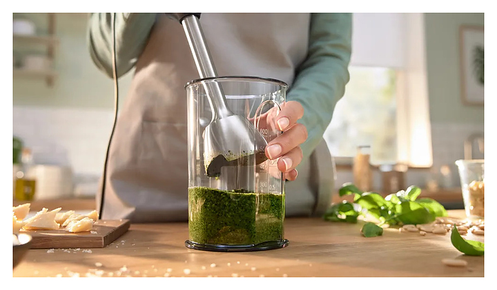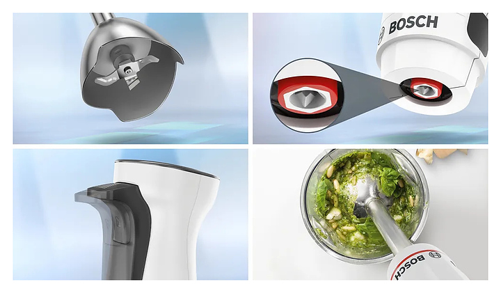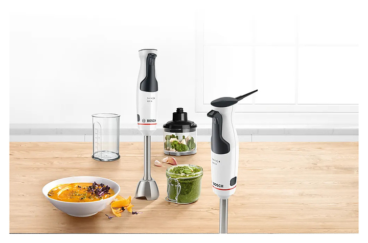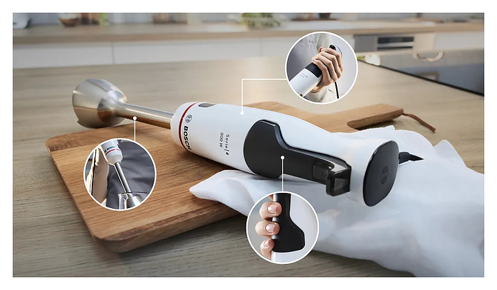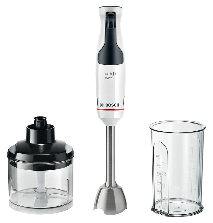 Погружной блендер Bosch MSM4W420 серии ErgoMaster предназначен для взбивания жидкого теста, кремов и коктейлей, измельчения фруктов, овощей, орехов и трав, а также приготовления соусов и супов-пюре в домашних условиях. Модель оснащена ножом с 4 лезвиями, ручкой, кнопками и бесступенчатой регулировкой скорости. Блендер обладает функциями насадки-комбайна для измельчения твердых продуктов. Съемные детали можно мыть в посудомоечной машине. Корпус и стакан из пластика, погружная часть - из металла. В комплект поставки входят мерный стакан и вакуумный насос. Дополнительные характеристики: