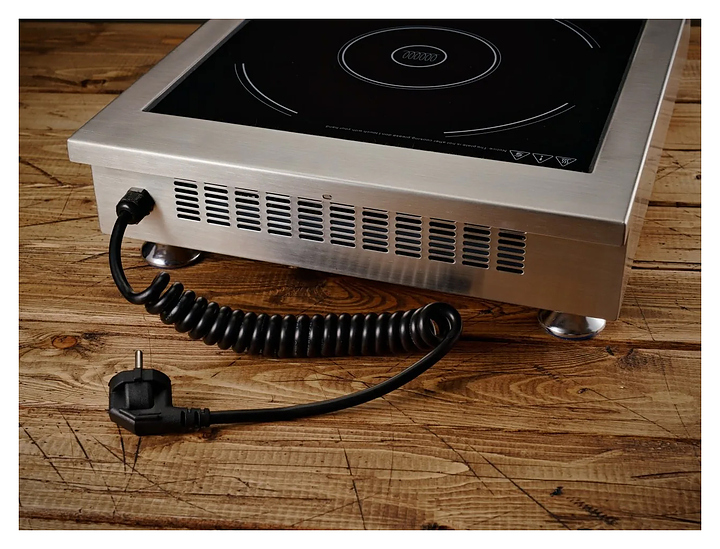 Индукционная плита Iplate NORA предназначена для приготовления и разогрева блюд в наплитной посуде на предприятиях общественного питания и торговли. Модель оснащена 1 конфоркой, сенсорной панелью управления и таймером автоматического отключения. При размещении посуды большого объема опорную функцию ребер жесткости принимают на себя края корпуса, что исключает возможность разбить или выдавить весом варочную поверхность. Индукционная технология обеспечивает передачу до 90% энергии непосредственно посуде, что значительно экономит электроэнергию по сравнению с традиционными плитами, отсутствие открытого огня и минимальный нагрев окружающей среды делают приготовление пищи более безопасным и комфортным. Корпус выполнен из нержавеющей стали 201, рабочая поверхность - из цельной стеклокерамики класса А. Особенности: