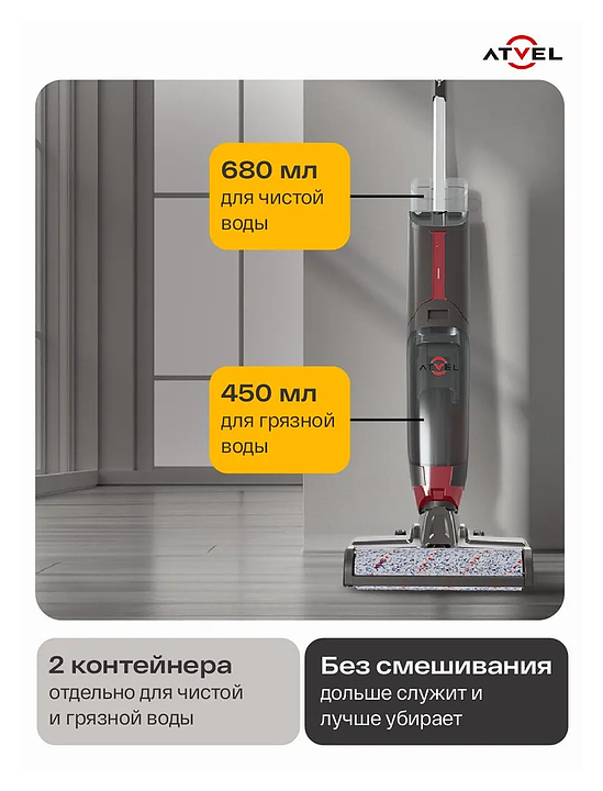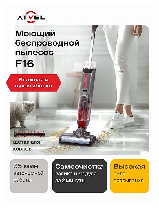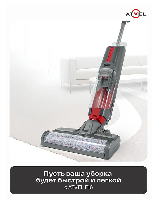 Пылесос вертикальный беспроводной моющий Atvel F16 Upright идеально подходит семьям, ценящим гигиену и простоту, он справляется с остатками пищи, жирными следами и даже старыми загрязнениями, продлевая свежесть напольных покрытий. Модель оснащена вертикальной парковкой и регулировкой мощности. Корпус изготовлен из прочного пластика, трубка цельная из пластика. В комплект поставки входят корпус пылесоса с рукоятью управления, щётка моторизированная с валиком, сменный щётка-валик для твёрдых полов, бак для чистой воды, бак для грязной воды с HEPA фильтром, литий-ионный аккумулятор, напольная станция для зарядки и самоочистки, адаптер питания 220 В ~ 30 В, инструкция на нескольких языках. Особенности:
