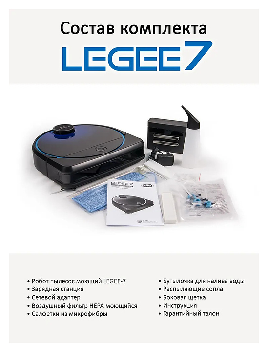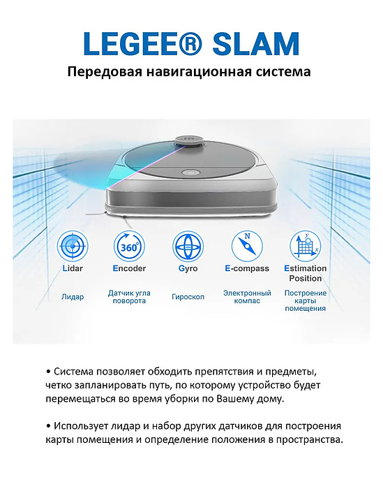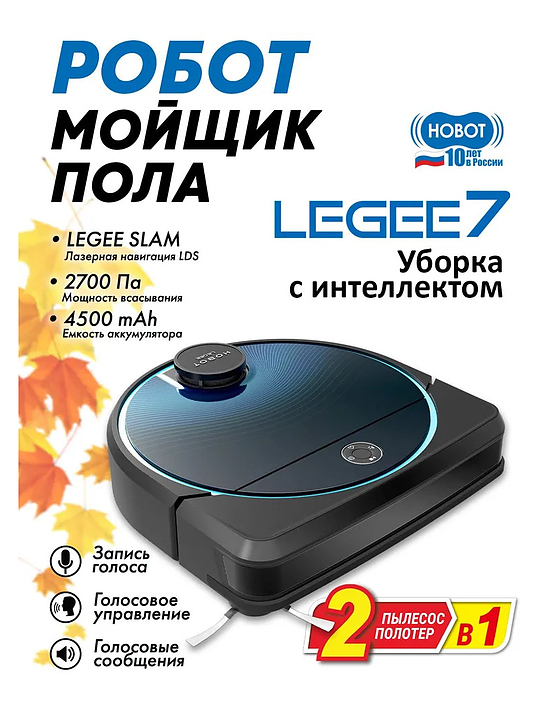 Робот пылесос моющий Hobot LEGEE 7 с функцией влажной уборки эффективно очищает как сухие полы, так и ковры, идеально подходит семьям, ценящим гигиену и простоту, он справляется с пылью и остатками пищи, продлевая свежесть напольных покрытий. Модель оснащена регулировкой мощности и парковкой пылесоса. Корпус изготовлен из прочного пластика. Особенности:
