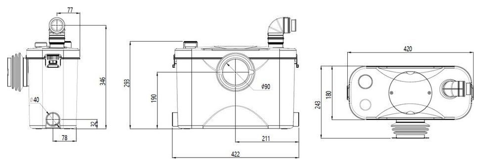 Бытовая канализационная насосная станция SANIVORT 405 M удаляет сточные воды от раковин и душевых кабин, находящихся ниже уровня коллектора канализационной системы, а также в удаленных местах, где невозможно или нецелесообразно организовать канализацию самотеком. Корпус выполнен из пластика, измельчитель - из нержавеющей стали. Комплектация: