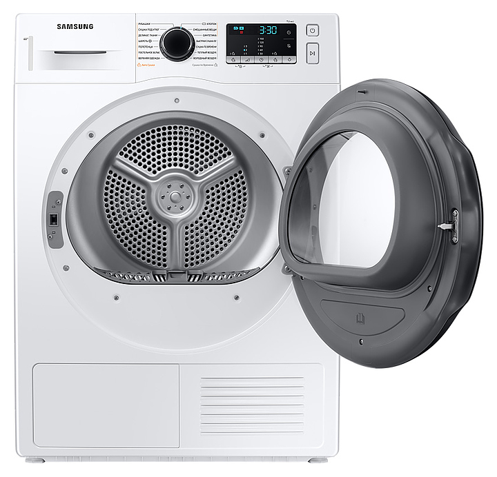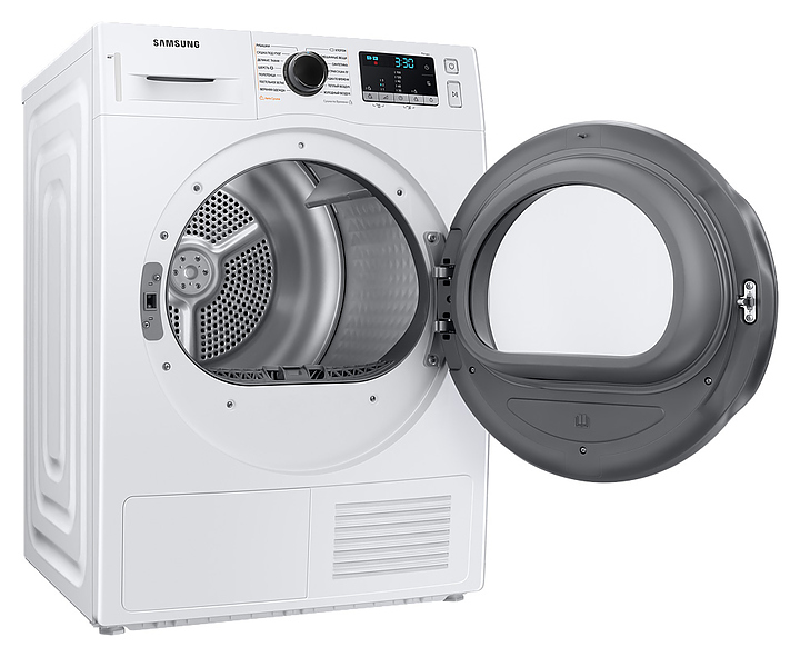 Сушильная машина Samsung DV5000T используется в квартирах и частных домах для сушки одежды, белья и тканей после стирки. Модель оснащена фронтальным люком, LED панелью, тепловым насосом и реверсивной дверью. Подсветка полости барабана гарантирует комфортную загрузку и выгрузку. Система OptimalDry автоматически оптимизирует время и температуру цикла для идеального результата без пересушивания и повреждения одежды. Барабан Diamond выполнен из обработанной стали. Программы: