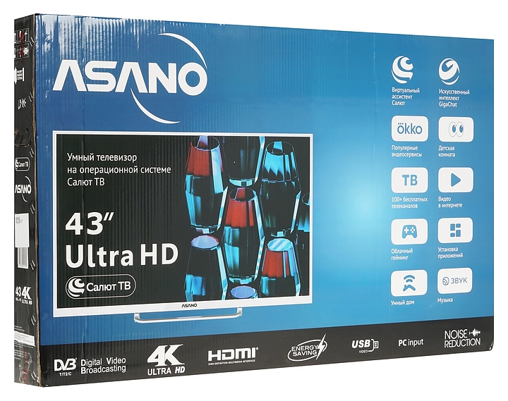 Телевизор Asano 43LU5011T предназначен для приема и воспроизведения видео и аудио контента с различных ресурсов таких как телевещание, Интернет, дополнительное подключаемое оборудование и физические носители в домашних условиях, гостиницах, офисах, холлах и кабинетах различных учреждений. Прибор оснащен плоским широкоформатным монитором, акустической стереосистемой с 2 встроенными динамиками, встроенным блоком питания, кабелем питания с вилкой и клавишами управления, пульт – кнопочной клавиатурой. Кожух прибора выполнен из ударопрочного полимера с матовой поверхностью белого цвета, рамка экрана и подставка с поверхностью белого цвета, корпус пульта – из белого пластика.