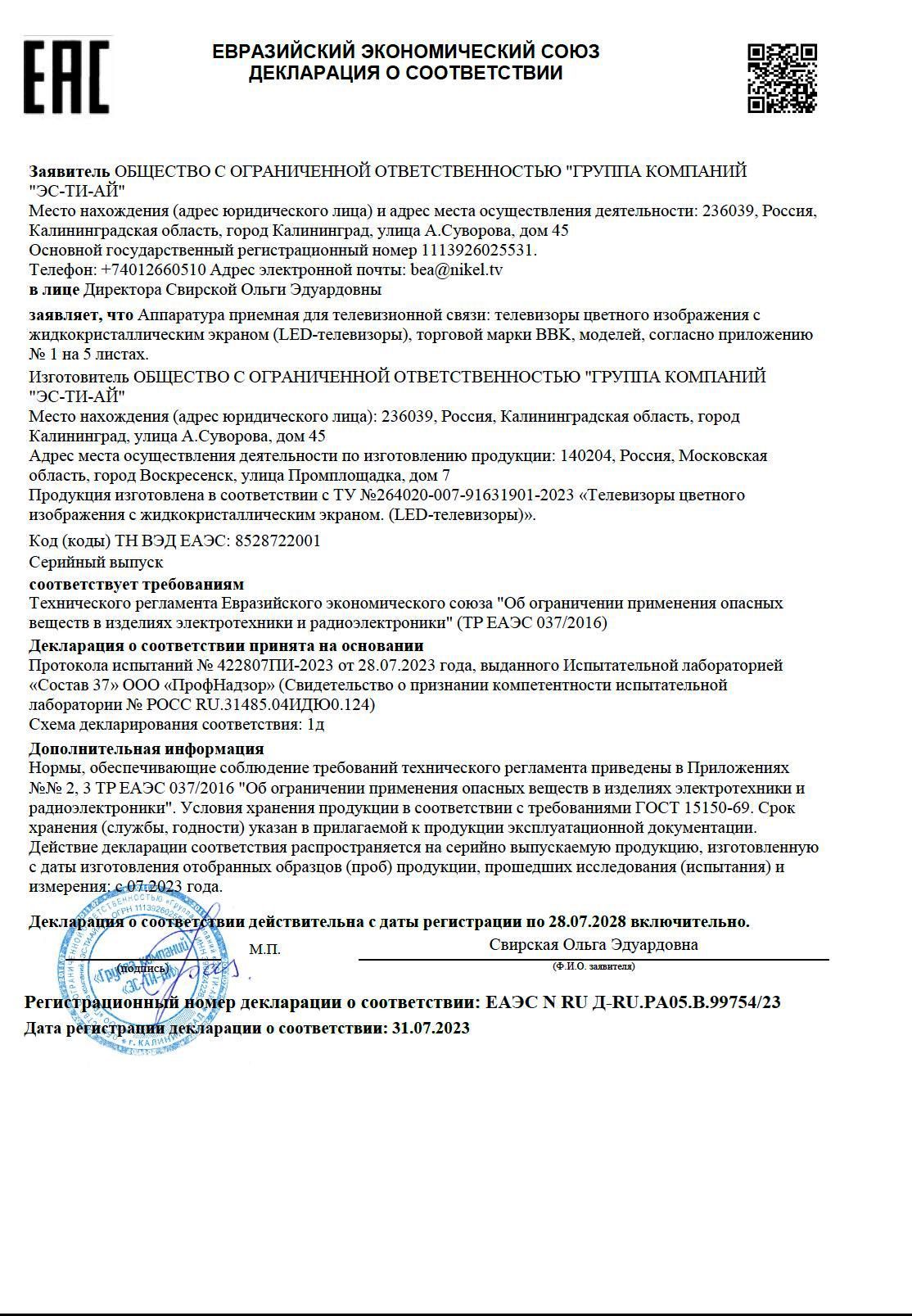 Телевизор BBK 32LEX-7246/TS2C предназначен для приема и воспроизведения видео и аудио контента с различных ресурсов таких как телевещание, Интернет, дополнительное подключаемое оборудование и физические носители в домашних условиях, гостиницах, офисах, холлах и кабинетах различных учреждений. Прибор оснащен плоским монитором, акустической стереосистемой с 2 встроенными динамиками, встроенным блоком питания, кабелем питания с вилкой и основным выключателем, пульт – кнопочной клавиатурой. Кожух прибора выполнен из ударопрочного полимера с матовой поверхностью черного цвета, рамка экрана и подставка – из пластика с поверхностью черного цвета, корпус пульта – из черного пластика.