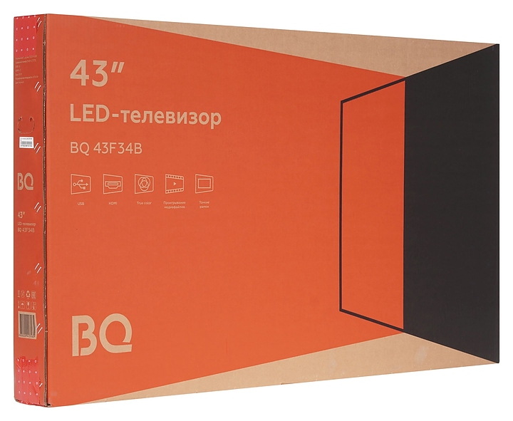 Телевизор BQ 43F34B предназначен для приема и воспроизведения видео и аудио контента с различных ресурсов таких как телевещание, дополнительное подключаемое оборудование и физические носители в домашних условиях, гостиницах, офисах, холлах и кабинетах различных учреждений. Прибор оснащен плоским широкоформатным монитором, акустической стереосистемой с 2 встроенными динамиками, встроенным блоком питания, кабелем питания с вилкой и основным выключателем, пульт – кнопочной клавиатурой. Кожух прибора выполнен из ударопрочного полимера с матовой поверхностью черного цвета, подставка – из металла с поверхностью черного цвета, корпус пульта – из черного пластика.