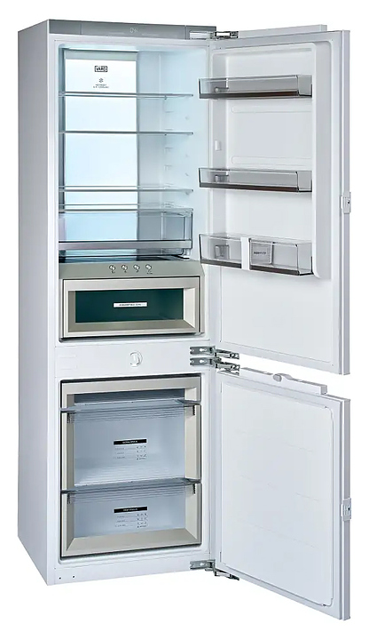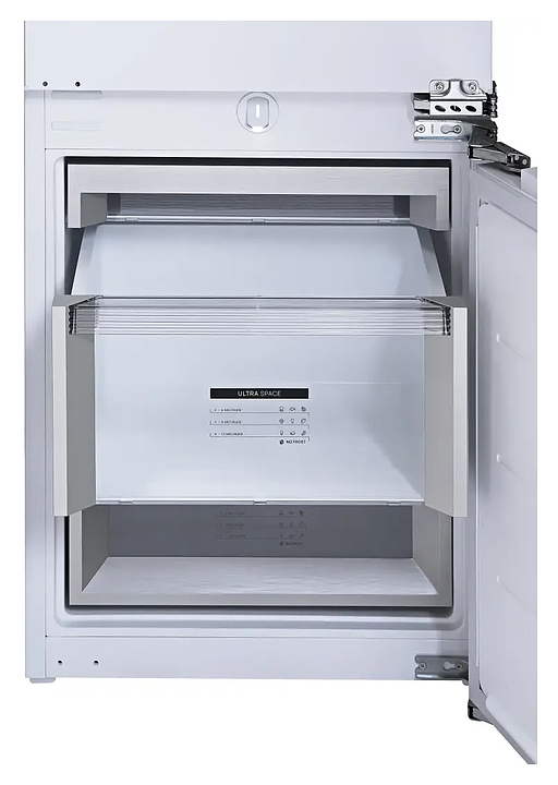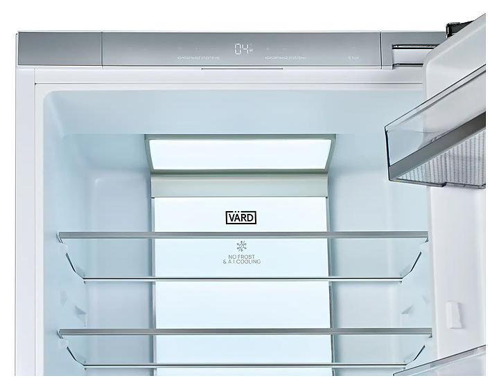Встраиваемый холодильник VARD VIC177NI предназначен для охлаждения, замораживания, кратковременного и длительного хранения продуктов питания в частных домах, квартирах, отелях и офисах. Модель оснащена 4 полками, 4 ящиками, внутренним 3D LED-освещением и системой крепления фасада непосредственно на дверь без применения дополнительных петель и фиксации с каркасом кухонной мебели. Одновременное использование инверторных компрессора и вентилятора обеспечивают тихую, экономичную и надежную работу. Интеллектуальное управление воздушными потоками AI Cooling в камере динамически регулирует их температуру и интенсивность в соответствии с заданными настройками. Система Full No Frost не требует размораживания камеры, потоки воздуха распределяются равномерно и исключают перепады температур. Полки выполнены из закаленного стекла. Особенности: