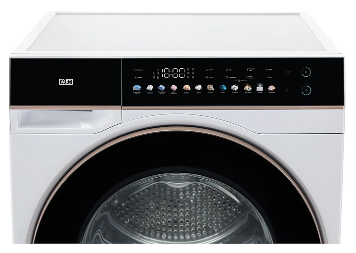 Сушильная машина VARD VTH61 используется в квартирах и частных домах для сушки одежды, белья и тканей после стирки. Модель оснащена фронтальным люком и цветным сенсорным управлением. Машина отличается генерацией ионов, которые уничтожают неприятные запахи и пыль, обеспечивают бережную заботу о вещах. Функция AutoDry замеряет влажность загруженных для сушки вещей и остановится сам, предотвращая пересушивание. Сушильный барабан с технологией Dual Rotation вращается в двух направлениях для создания эффекта встряски вещей и обеспечивает более эффективную сушку и гладкость белья и одежды. Ультрафиолетовый луч активируется в конце цикла, меняет структуру потенциально опасных микроорганизмов и предотвращает их дальнейшее размножение. Программы: