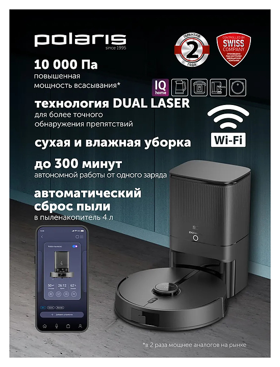 Умный робот пылесос Polaris PVCR 5006 WIFI IQ Home созданный для сухой, влажной и комбинированной уборки, обеспечивает идеальную чистоту в вашем доме. Устройство оснащено системой построения до 5 карт помещения и возможностью управления через смартфон, а также голосовыми помощниками. В комплект входит: