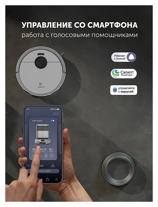 Робот пылесос со станцией самоочистки Polaris PVCRAC 7290 WIFI IQ Home созданный для сухой, влажной и комбинированной уборки, обеспечивает идеальную чистоту в вашем доме. Устройство оснащено системой построения до 5 карт помещения и возможностью управления через смартфон, а также голосовыми помощниками. В комплект входит пылесос, фильтр НЕРА 1 шт, микрофибра 2 шт, 1 боковая щетка, щеточка для очистки, мешок для пыли 1 шт, зарядная база, адаптер, инструкция. Особенности: